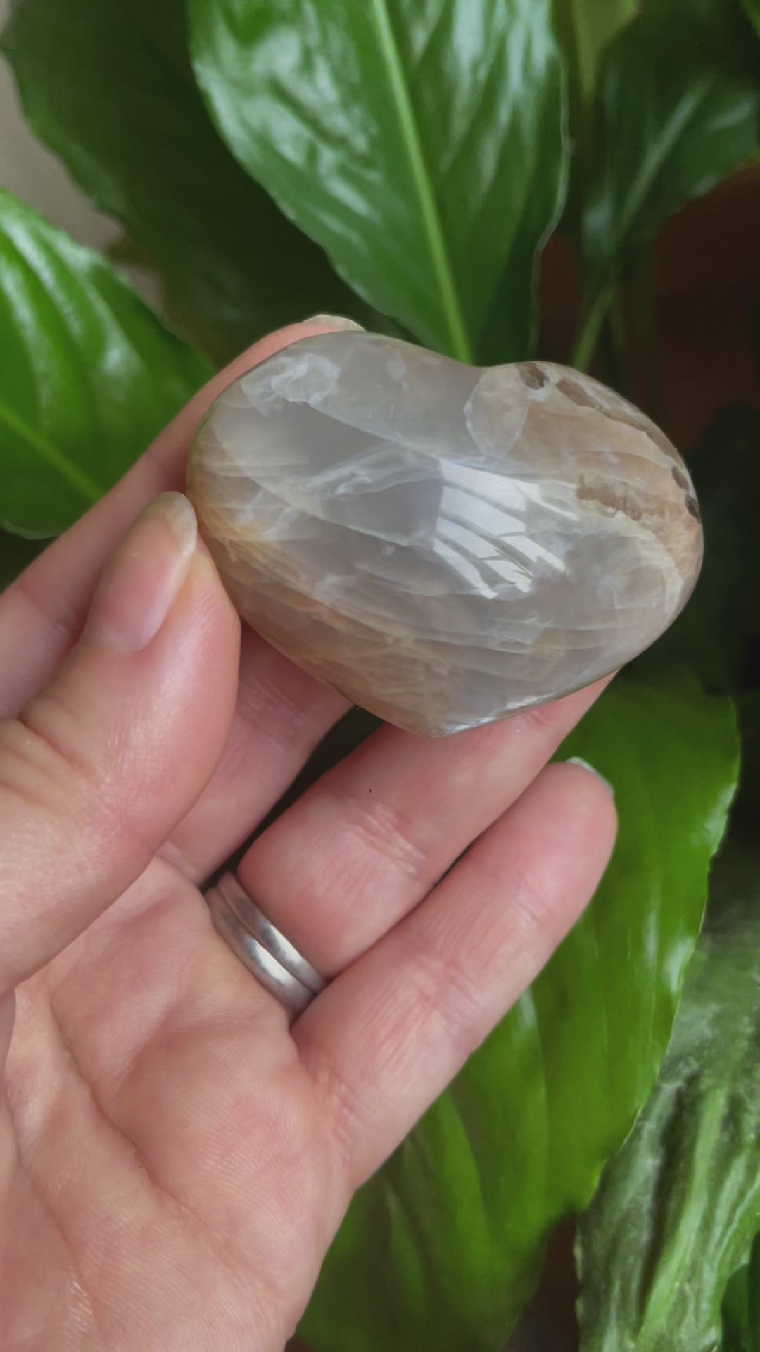 Carved into a heart shape, this piece carries the loving, nurturing energy of moonstone, offering comfort during emotional challenges and supporting the growth of inner strength. Its protective qualities also help to shield you from negative energies, while its connection to the lunar cycles enhances its ability to foster transformation and rebirth.