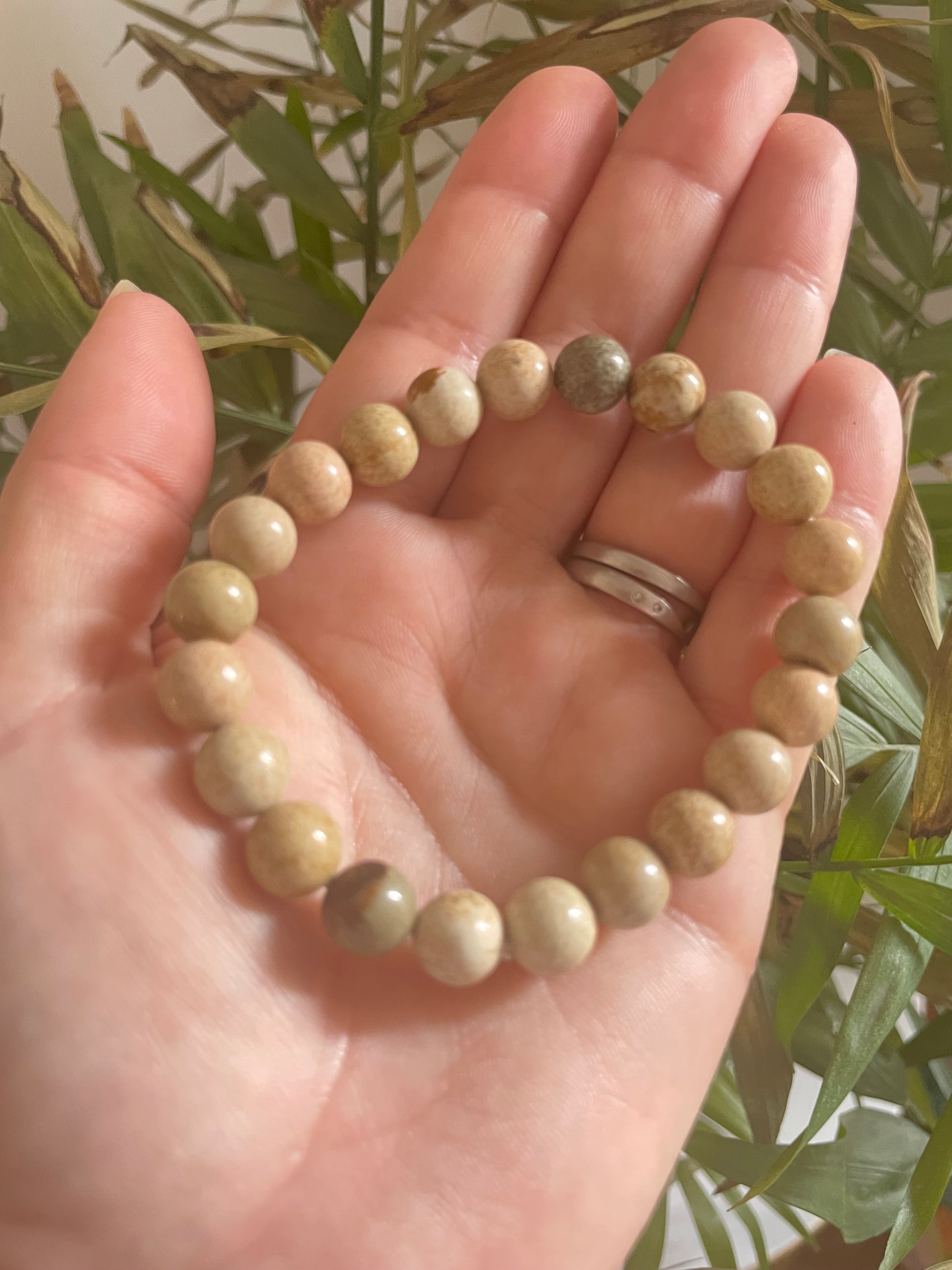 Picture Jasper is a unique and visually striking stone known for its earthy tones and intricate patterns, resembling natural landscapes such as mountains, forests, or deserts. Ranging from warm browns and tans to creamy beiges, each piece of Picture Jasper features distinct markings and designs, making it a true work of art. This stone is revered for its grounding properties and is believed to enhance creative visualization and inspiration. Picture Jasper fosters a deep connection to the Earth, promoting feelings of stability, comfort, and tranquility. Often used in meditation and healing practices, it is thought to help release negative energy and encourage self-reflection. Its natural beauty and powerful energy make Picture Jasper a highly sought-after choice for crystal enthusiasts and those seeking a deeper connection to nature.